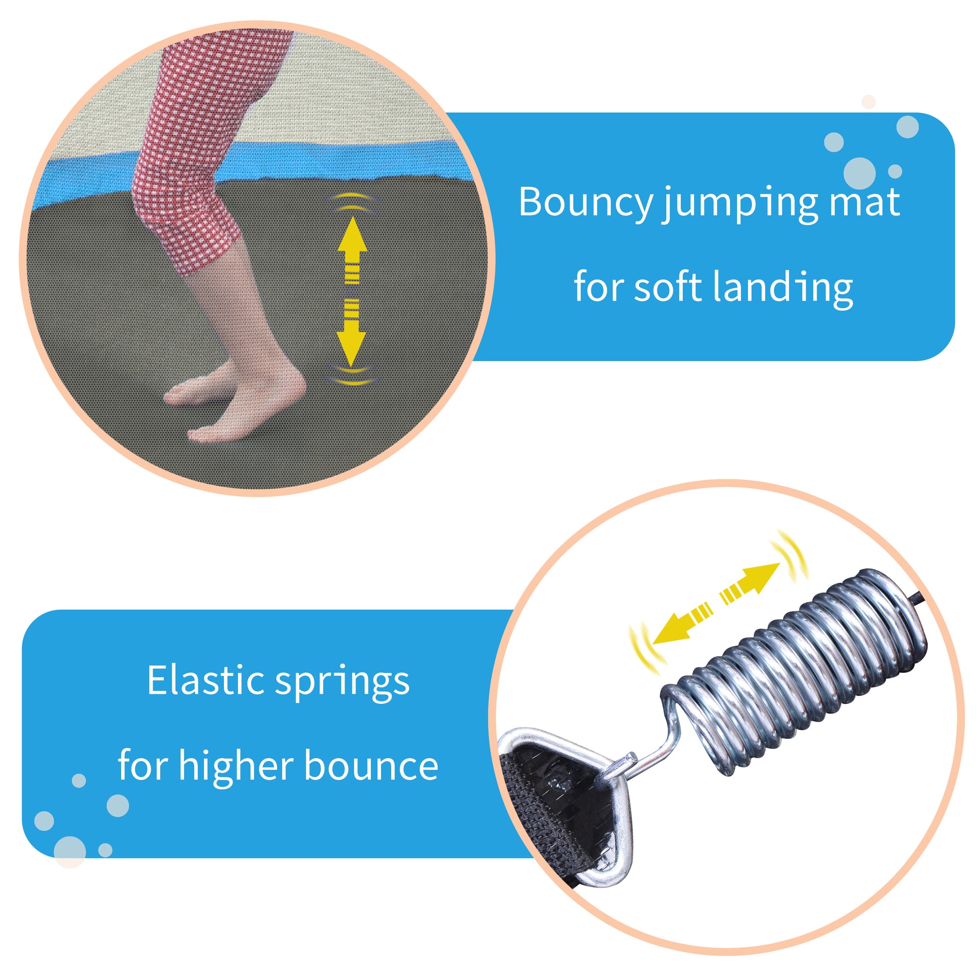 SUPERIOR BOUNCE - Quality polypropylene jumping mat and heavy gauged 30 springs provide robust strength and bounce while jumping. The bright pink / green / blue color design makes the trampoline look more athletic and dynamic.